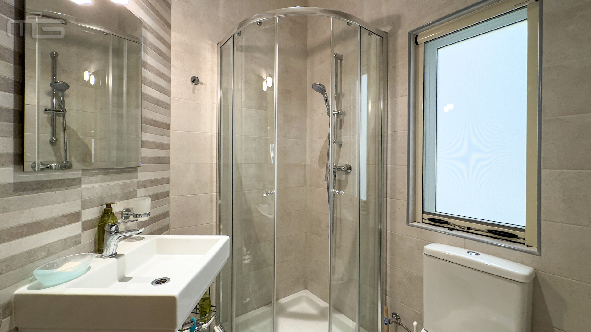 The apartment itself is bright and airy throughout. A spacious double bedroom is located at the front of the property, with a family shower room positioned adjacent to it. The second double bedroom includes its own ensuite shower room, offering additional privacy and convenience. The property further benefits from a separate utility and storage room, providing excellent functionality for both holiday and long-term living.