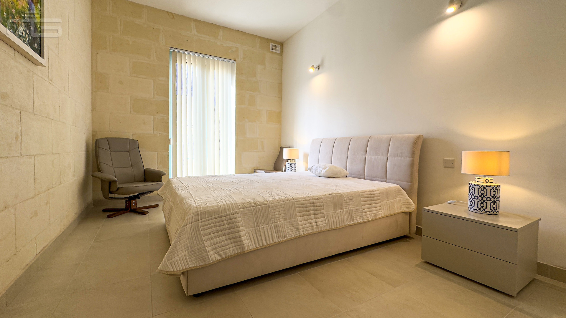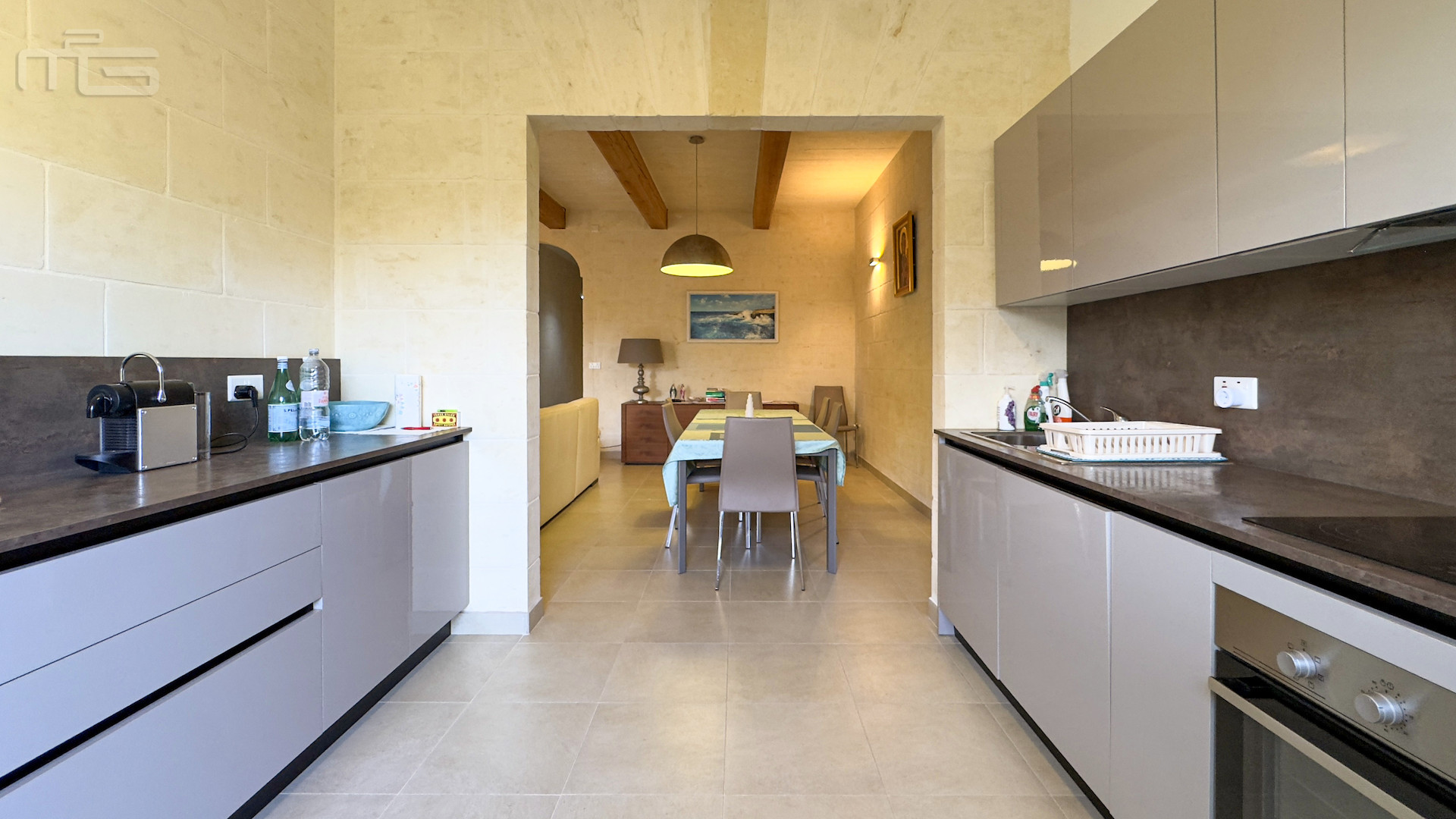 A covered terrace leads off the living area, offering the perfect place to enjoy the serene outlook and Gozo’s gentle climate.