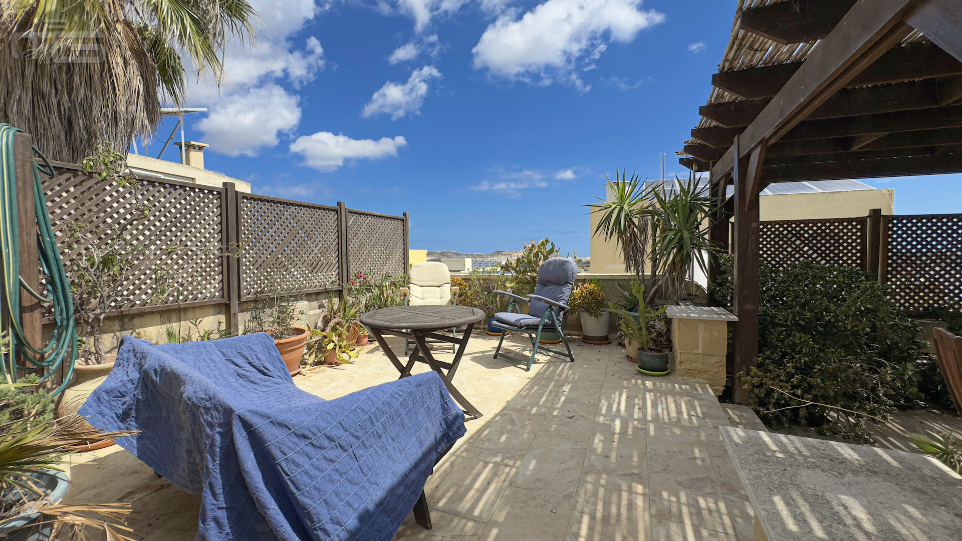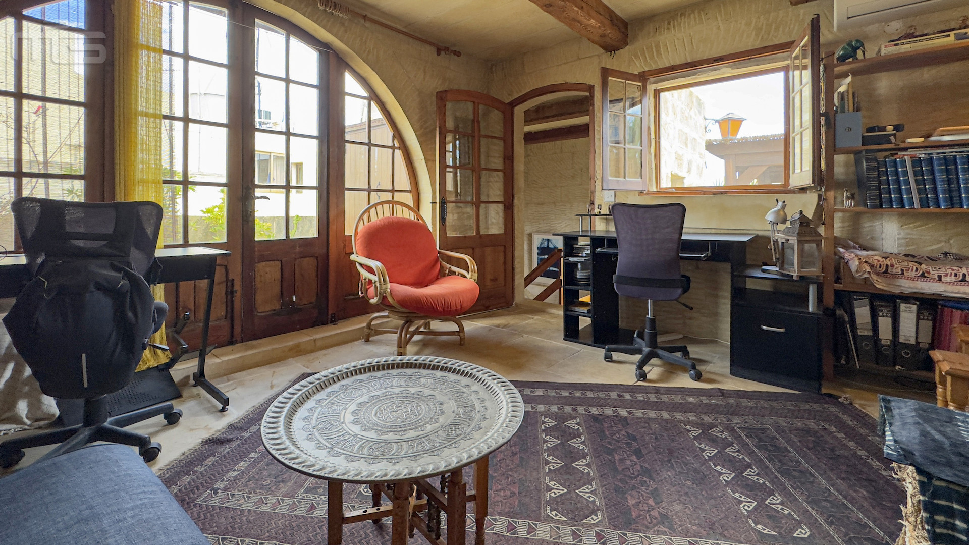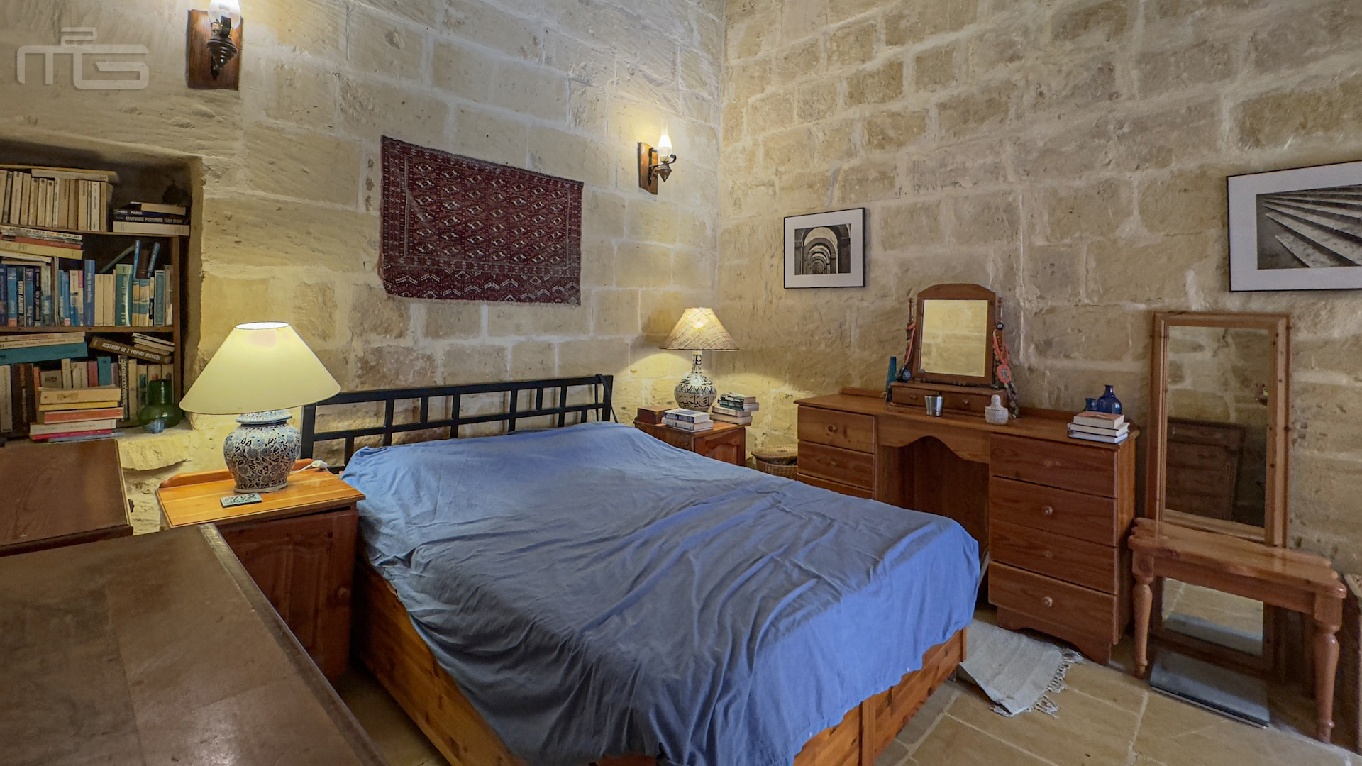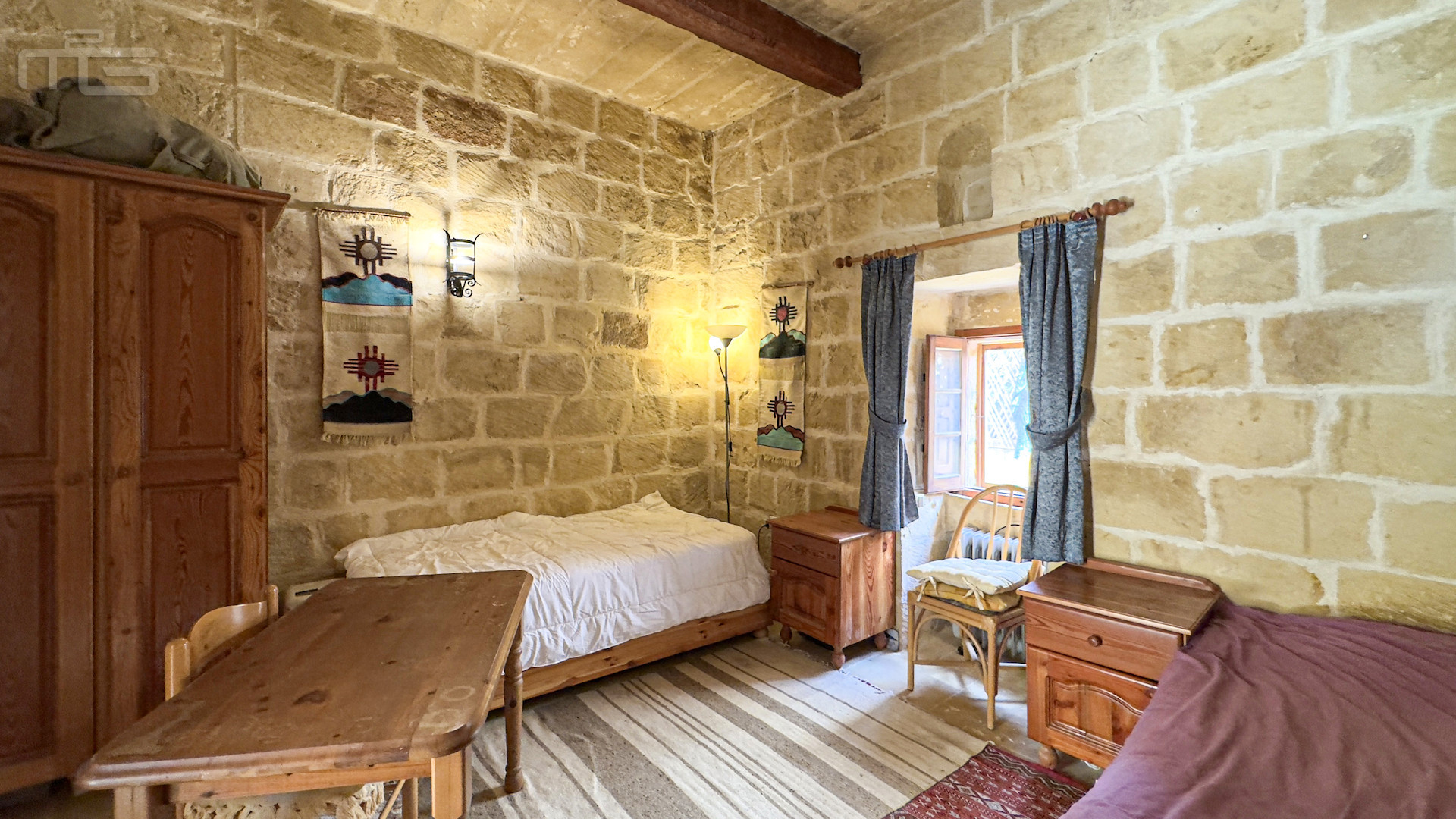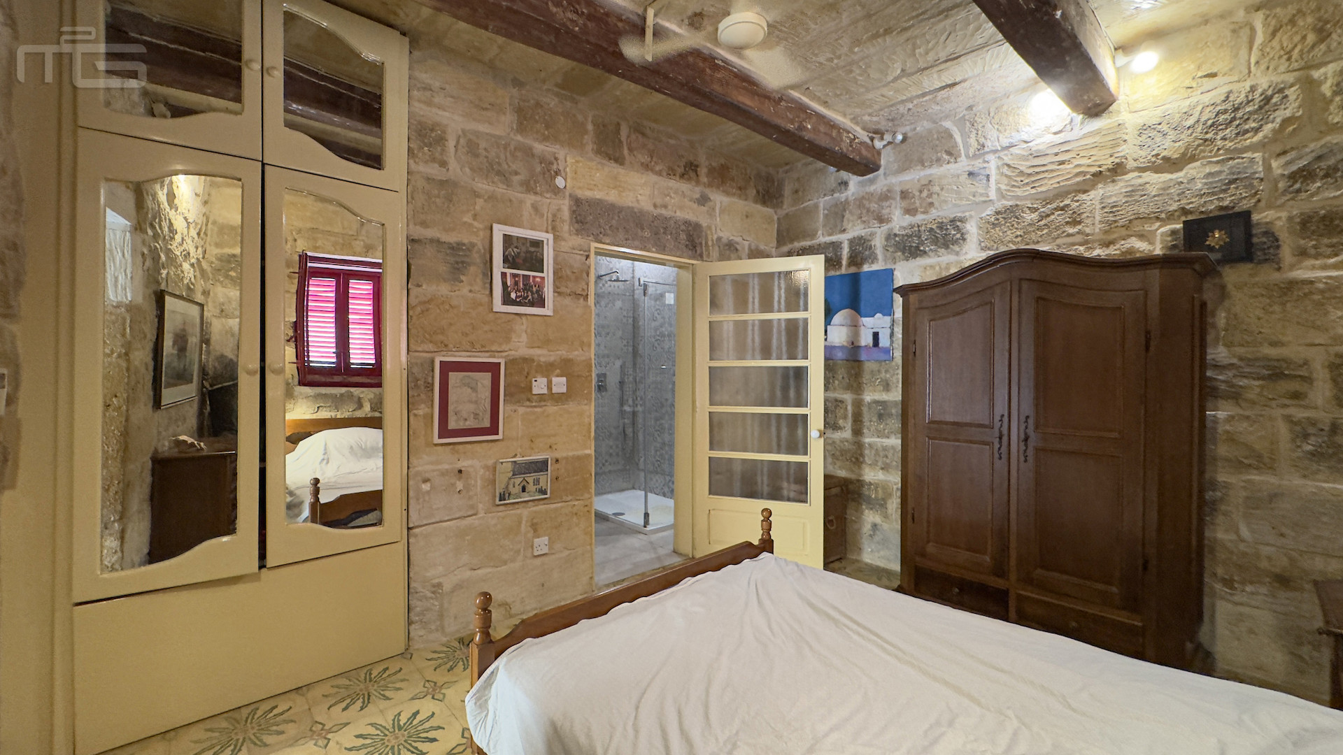 Upstairs, the accommodation continues with a spacious double or twin bedroom, a further double bedroom with traditional kileb and xorok ceilings, a feature which indicates the true age of this property, and which features an unusually long set of high level stone shelving. Opposite this room is a family bathroom. Across a charming terrace is the master bedroom with high beamed ceilings, stone floors, and its own ensuite. A further internal stone staircase ascends to a final bedroom, currently arranged as a bright office with its own terrace. At roof level, a lush 40 square meter roof garden creates a private oasis, perfect for sunbathing or just reading a book, with a wooden gazebo providing shade for outdoor dining and space to enjoy sunset drinks while taking in direct views of the Citadel at the heart of the island.