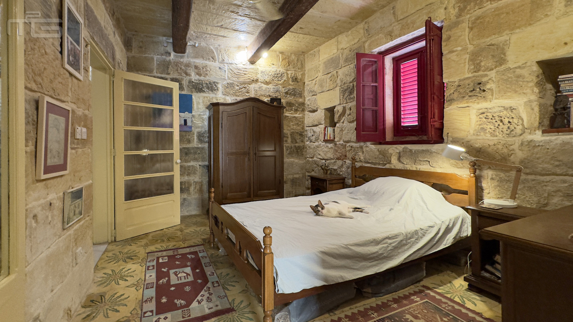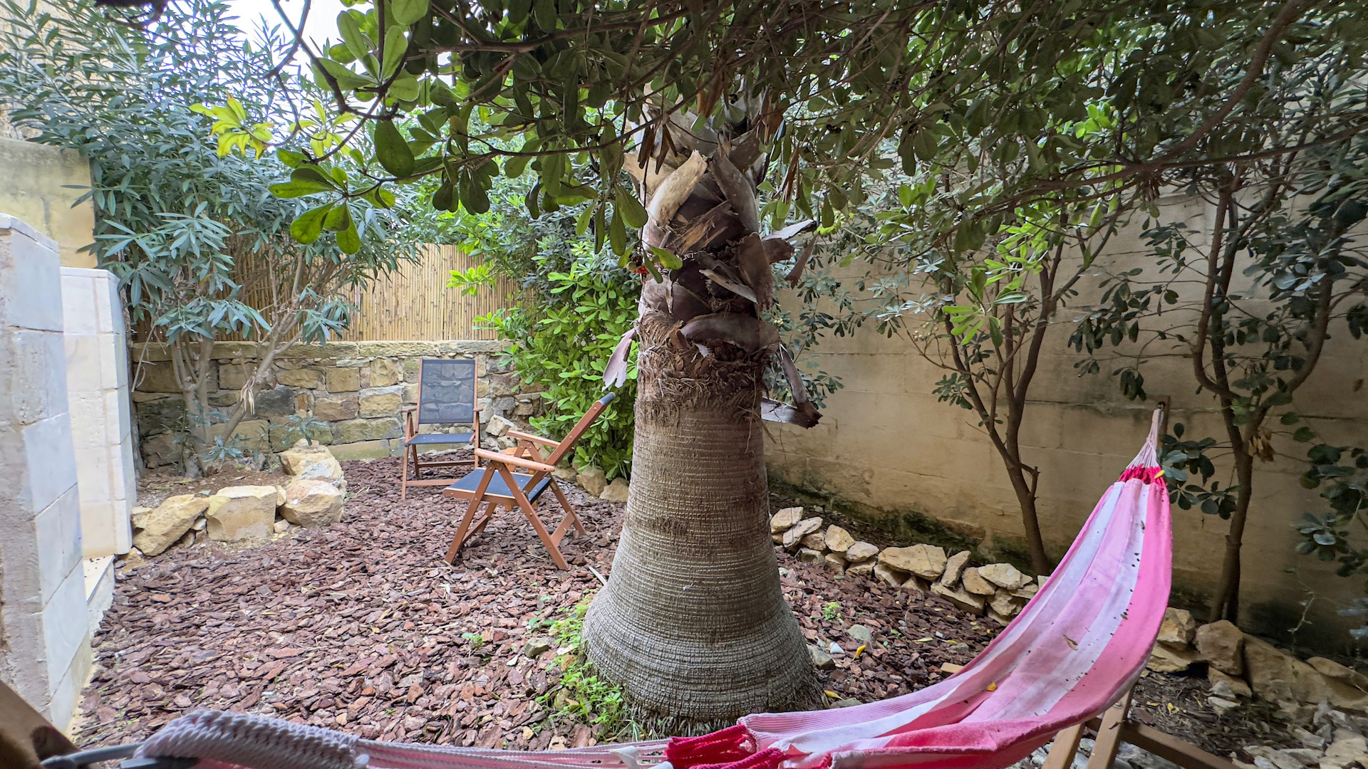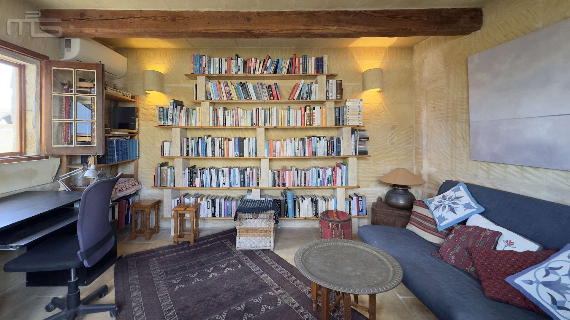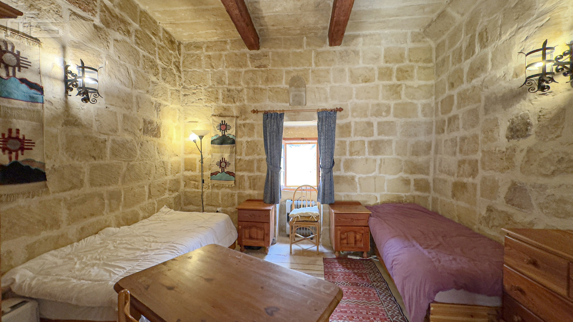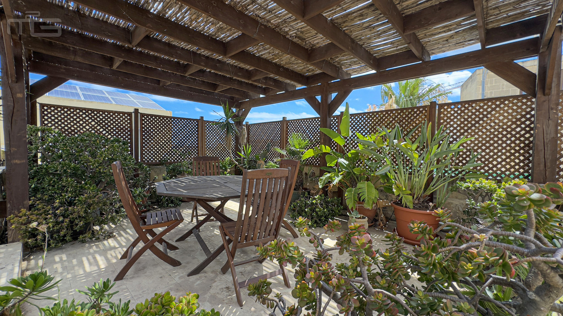Upstairs, the accommodation continues with a spacious double or twin bedroom, a further double bedroom with traditional kileb and xorok ceilings, a feature which indicates the true age of this property, and which features an unusually long set of high level stone shelving. Opposite this room is a family bathroom. Across a charming terrace is the master bedroom with high beamed ceilings, stone floors, and its own ensuite. A further internal stone staircase ascends to a final bedroom, currently arranged as a bright office with its own terrace. At roof level, a lush 40 square meter roof garden creates a private oasis, perfect for sunbathing or just reading a book, with a wooden gazebo providing shade for outdoor dining and space to enjoy sunset drinks while taking in direct views of the Citadel at the heart of the island.